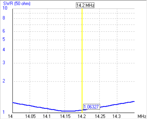 - SWR at 14.350 MHz: 1.28:1